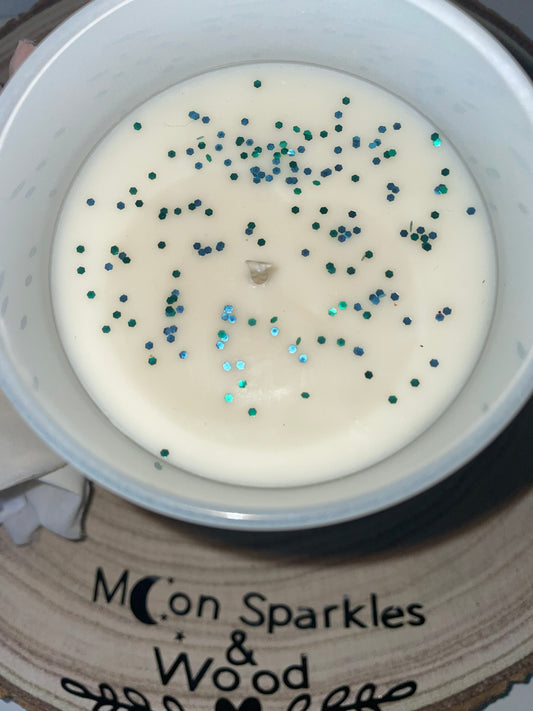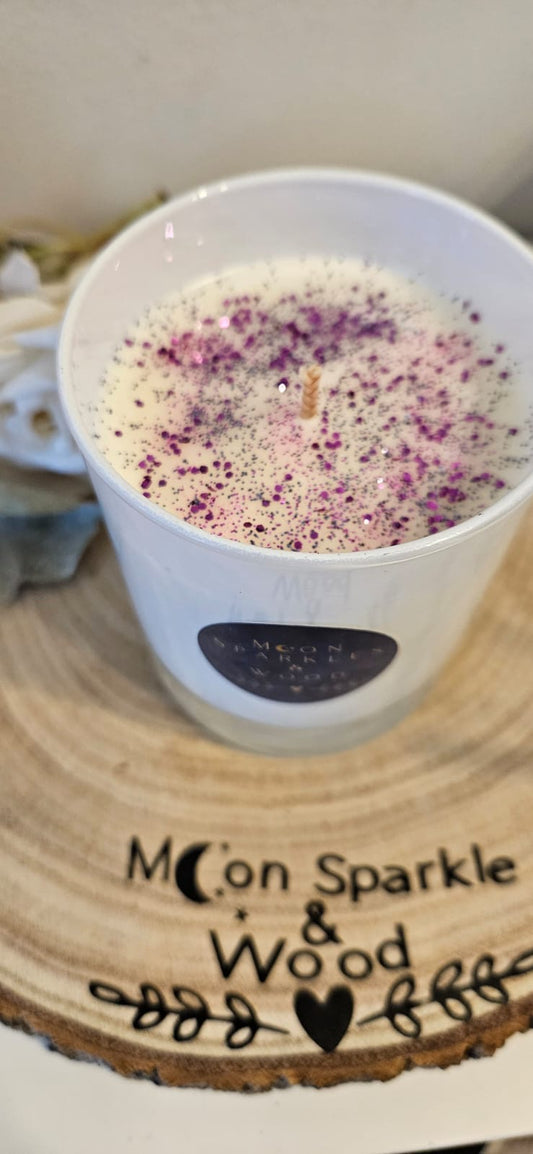 Each candle is decorated with love & sparkle using biodegradable glitter/ dried petals (when used).